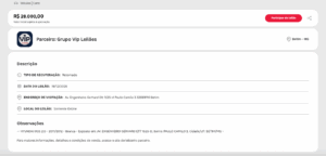 - Clique em “Participar do leilão” e você será redirecionado para o site do leiloeiro correspondente;