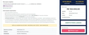 - Dê o seu lance no veículo desejado;